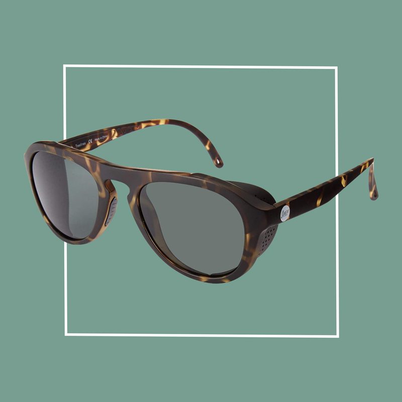 Another socially conscious choice, all Sunskis are composed of a minimum of 20% recycled content, and the frames on this particular model are made from 100% recycled post-industrial scrap plastic from the U.S. Their green polarized lenses eliminate glare at a comparatively budget-minded price, deliver 100% UV protection, and offer perforated sunshields for wrap-around protection that breathes.